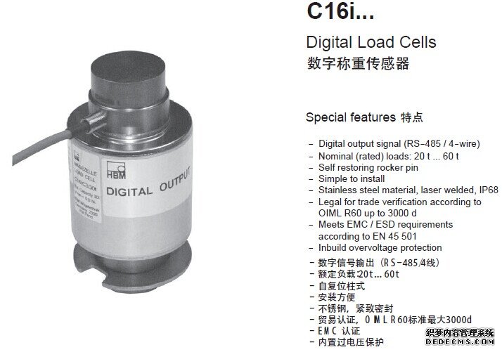 德國HBM C16iC3/40T稱重傳感器產(chǎn)品描述:zTQ廣州南創(chuàng)電子科技有限公司