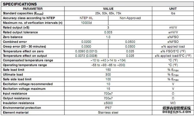 34499:  5103-B10-50k-30P1 50,000lb 30ft 3mV/V 700 OHM WW NTEP IIIL 10m FM IP67 OEQ廣州南創(chuàng)電子科技有限公司