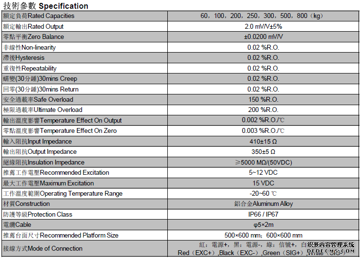 額定負(fù)荷:60,100,200,250,300,500,800(kg)SAR廣州南創(chuàng)電子科技有限公司