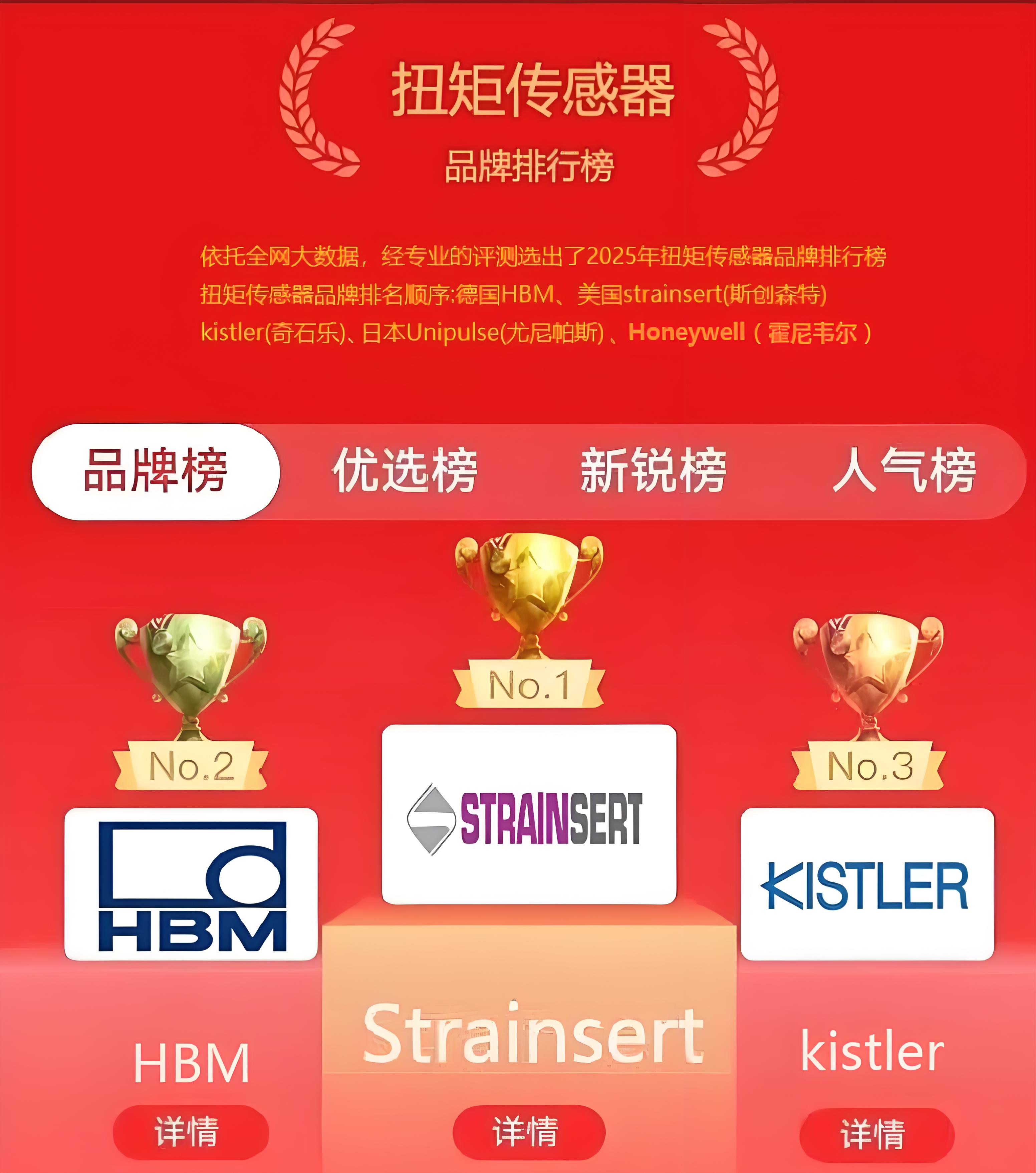 斯創(chuàng)森特(strainsert)2025扭矩傳感器十大品牌排行榜中位列前三、于全球國際知名頂尖傳感器品牌并列,這更進(jìn)一步表明Strainsert(斯創(chuàng)森特)在專業(yè)傳感器領(lǐng)域其產(chǎn)品性能技術(shù)和質(zhì)量得到行業(yè)認(rèn)可、具備重要的品牌影響力,是高端扭矩傳感器領(lǐng)域的“隱形冠軍”屬于細(xì)分領(lǐng)域的國際知名品牌。j5Q廣州南創(chuàng)電子科技有限公司