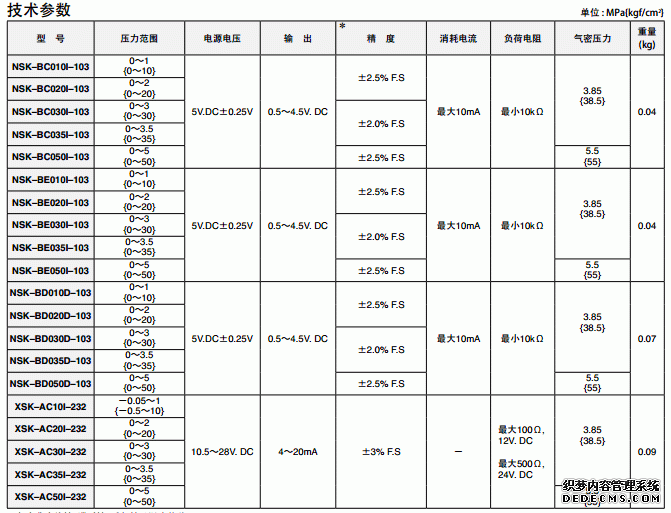 日本鷺宮NSK-BD030D-103壓力傳感器產(chǎn)品技術參數(shù)圖:QXG廣州南創(chuàng)電子科技有限公司