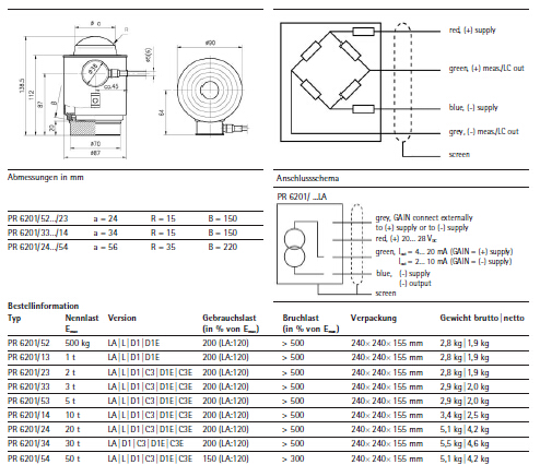 賽多利斯Sartorius PR6201系列稱重傳感器所有量程如下nCK廣州南創(chuàng)電子科技有限公司