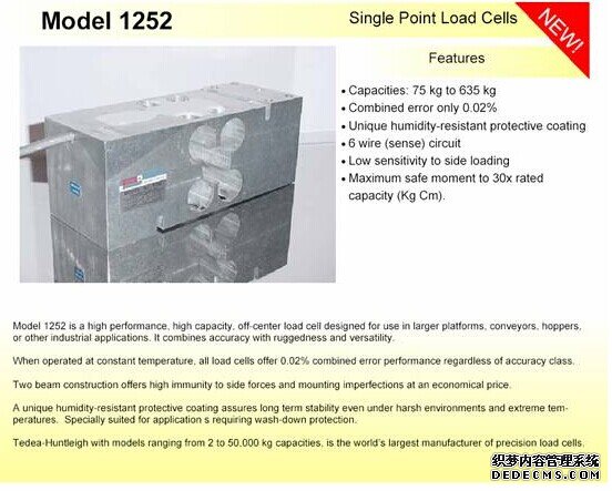美國特迪亞1252-100kg傳感器特性:RMG廣州南創(chuàng)電子科技有限公司