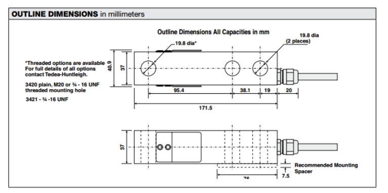 3420-1000LB 3420-2000LB 3420-2500LB稱(chēng)重傳感器 美國(guó)特迪亞Tedea