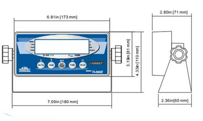 美國傳力TranscelTI-500E稱重顯示儀表尺寸圖:Qnr廣州南創(chuàng)電子科技有限公司
