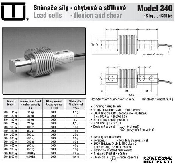 西班牙尤梯爾稱重傳感器MOD340-50kg技術(shù)參數(shù):P6c廣州南創(chuàng)電子科技有限公司