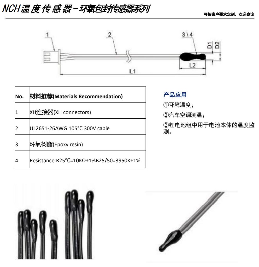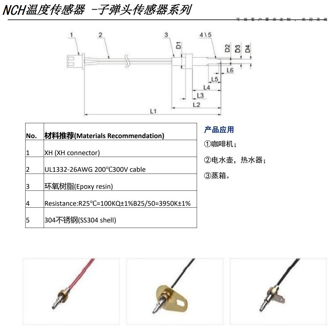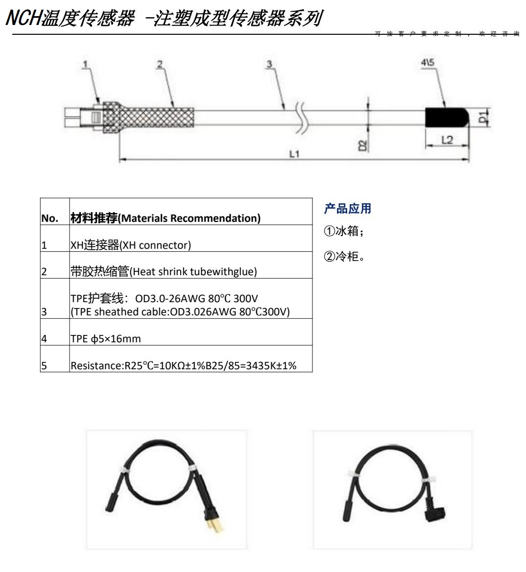 NCH溫度濕度傳感器用于冰箱、冰柜、冷藏室、冷凍室、蒸發(fā)器、壓縮機(jī)