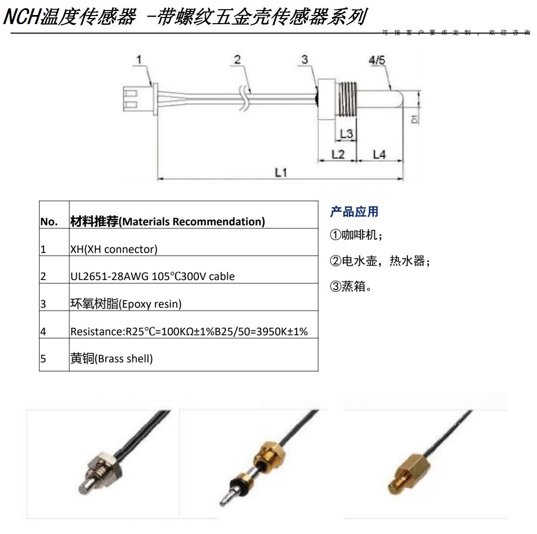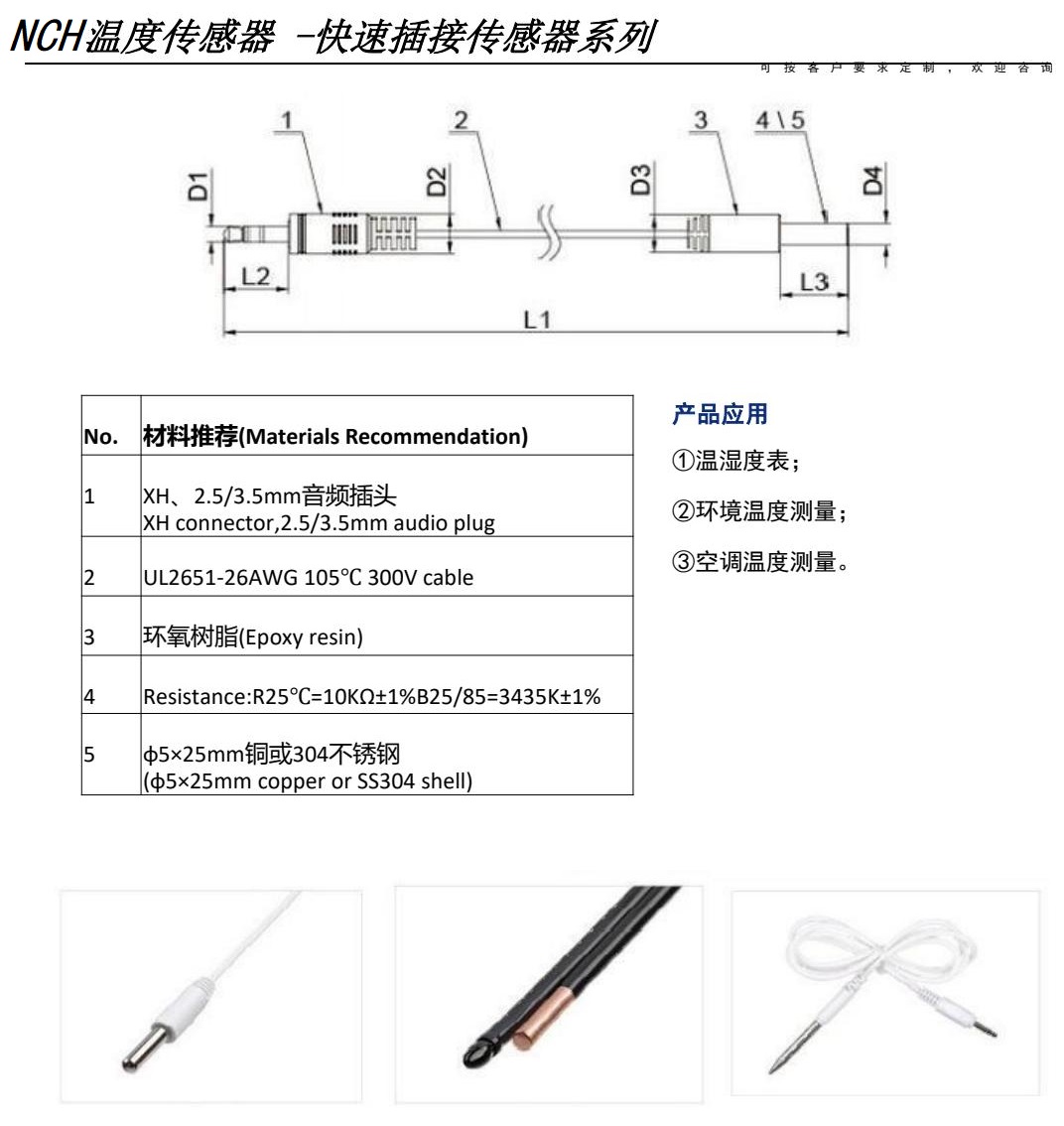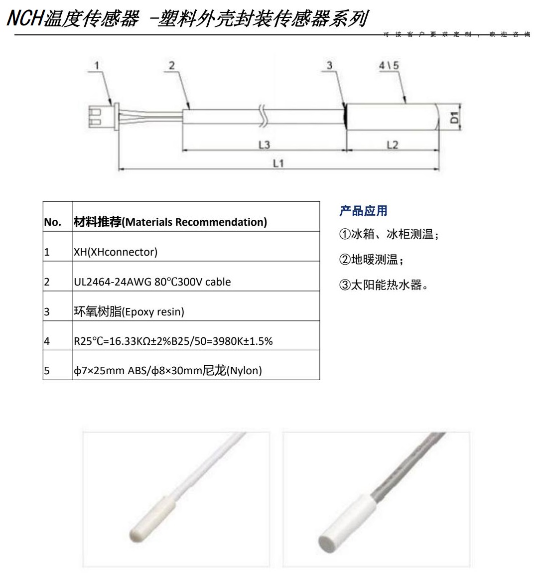 NCH溫度濕度傳感器用于冰箱、冰柜、冷藏室、冷凍室、蒸發(fā)器、壓縮機(jī)