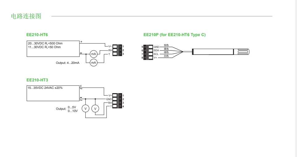 奧地利E+E ee210溫濕度顯示器電路連接圖:Ybo廣州南創(chuàng)電子科技有限公司